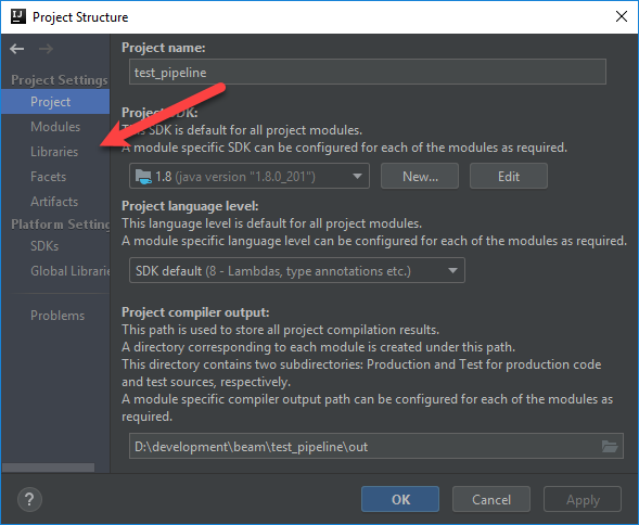 Click OK on the Project Structure dialog and return to your java class. Let’s instantiate a Dataflow pipeline….